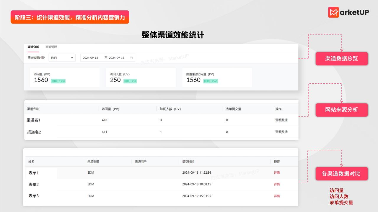 有(yǒu)效的(de)內(nèi)容追蹤功能(néng)就(jiù)像企≠♦ 業(yè)的(de)營銷雷達,智火(huǒ)&MarketUP提出效能©→(néng)标準、渠道(dào)整合、追蹤→工(gōng)具、數(shù)據分(fēn)析四大(φε₩♣dà)關鍵要(yào)點,幫助企業(yè)實現(☆ ≤λxiàn)實時(shí)監控目标客戶的(de)購(gòu)買旅€&程,精确捕捉每一(yī)次營銷活動的(de) •效果,确保內(nèi)容營銷資源的(de)投放(fàn×≈¥₹g)既精準又(yòu)高(gāo)效,直接對(duì)接客戶需求ε•,高(gāo)效引導客戶深入品牌的(de)營銷漏鬥,最♣©終促進轉化(huà)和(hé)忠誠度的(de)提升。
